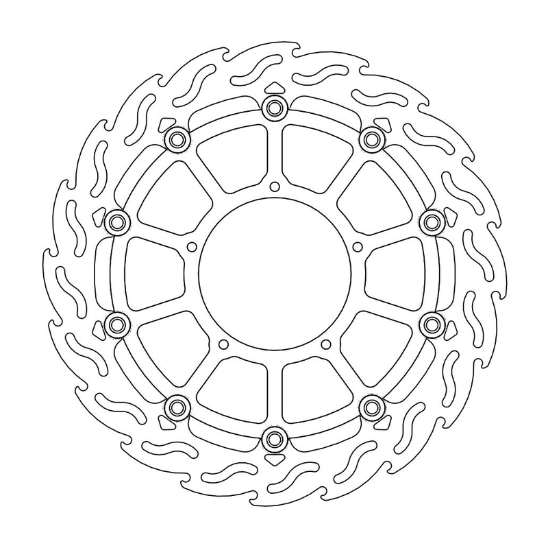 Questo disco flottante con rotore inacciaio anodizzato di colore nero o o argento. Con il famoso disegno a fiamma che ne aumenta il raffreddamento. Compatibile con la pinza freno originale