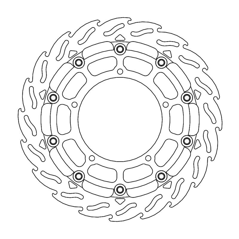 Questo disco flottante con rotore inacciaio anodizzato di colore nero o o argento. Con il famoso disegno a fiamma che ne aumenta il raffreddamento. Compatibile con la pinza freno originale