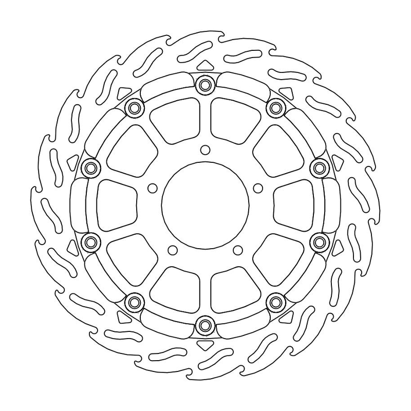 Questo disco flottante con rotore inacciaio anodizzato di colore nero o o argento. Con il famoso disegno a fiamma che ne aumenta il raffreddamento. Compatibile con la pinza freno originale