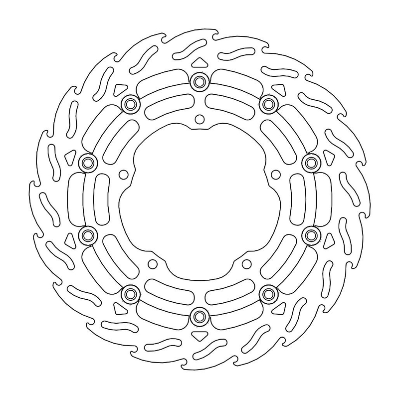 Questo disco flottante con rotore inacciaio anodizzato di colore nero o o argento. Con il famoso disegno a fiamma che ne aumenta il raffreddamento. Compatibile con la pinza freno originale