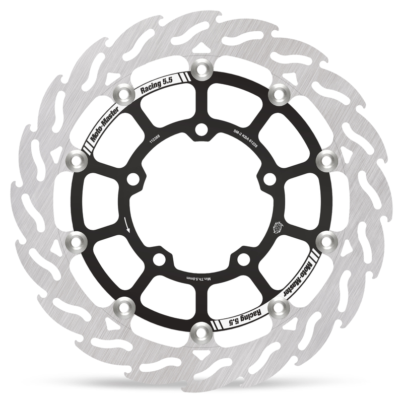 Questo disco flottante con rotore inacciaio anodizzato di colore nero o o argento. Con il famoso disegno a fiamma che ne aumenta il raffreddamento. Compatibile con la pinza freno originale