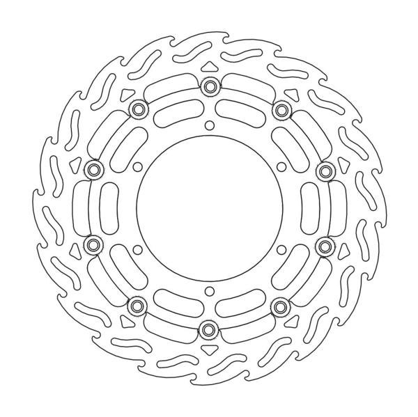Questo disco flottante con rotore inacciaio anodizzato di colore nero o o argento. Con il famoso disegno a fiamma che ne aumenta il raffreddamento. Compatibile con la pinza freno originale