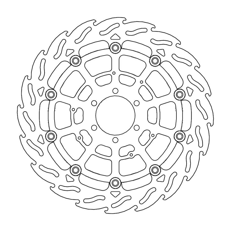 Questo disco flottante con rotore inacciaio anodizzato di colore nero o o argento. Con il famoso disegno a fiamma che ne aumenta il raffreddamento. Compatibile con la pinza freno originale