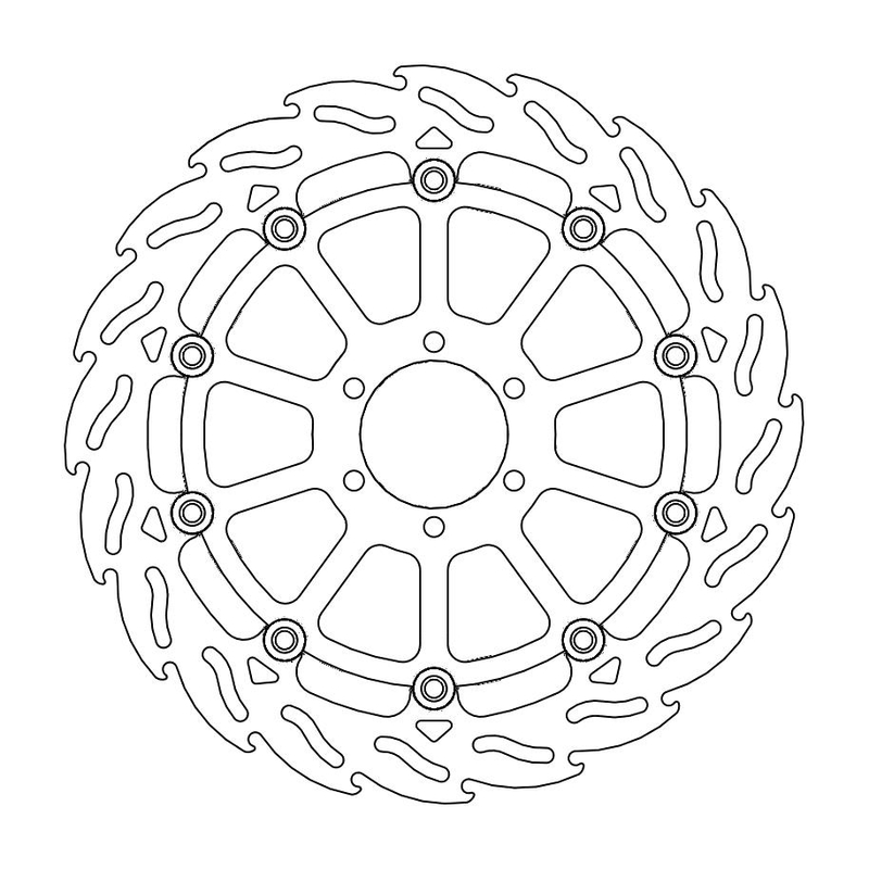 Questo disco flottante con rotore inacciaio anodizzato di colore nero o o argento. Con il famoso disegno a fiamma che ne aumenta il raffreddamento. Compatibile con la pinza freno originale