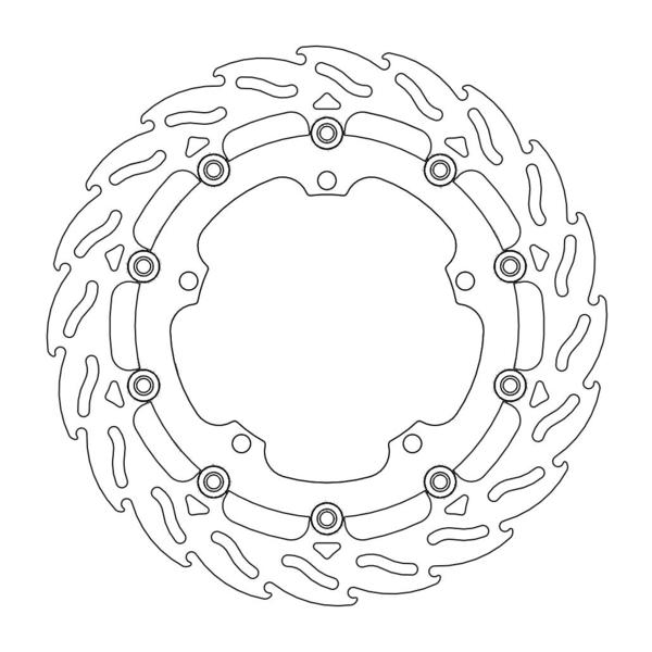 Questo disco flottante con rotore inacciaio anodizzato di colore nero o o argento. Con il famoso disegno a fiamma che ne aumenta il raffreddamento. Compatibile con la pinza freno originale
