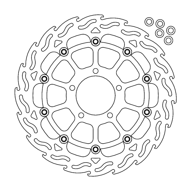 Questo disco flottante con rotore inacciaio anodizzato di colore nero o o argento. Con il famoso disegno a fiamma che ne aumenta il raffreddamento. Compatibile con la pinza freno originale