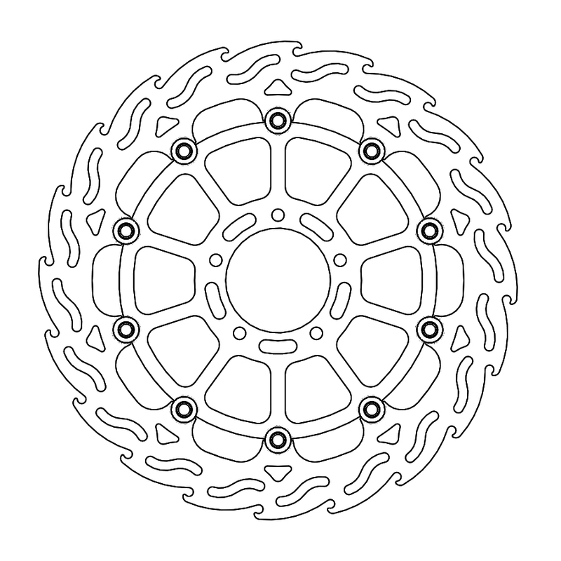 Questo disco flottante con rotore inacciaio anodizzato di colore nero o o argento. Con il famoso disegno a fiamma che ne aumenta il raffreddamento. Compatibile con la pinza freno originale