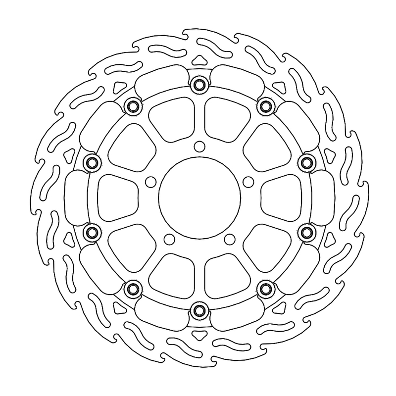 Questo disco flottante con rotore inacciaio anodizzato di colore nero o o argento. Con il famoso disegno a fiamma che ne aumenta il raffreddamento. Compatibile con la pinza freno originale
