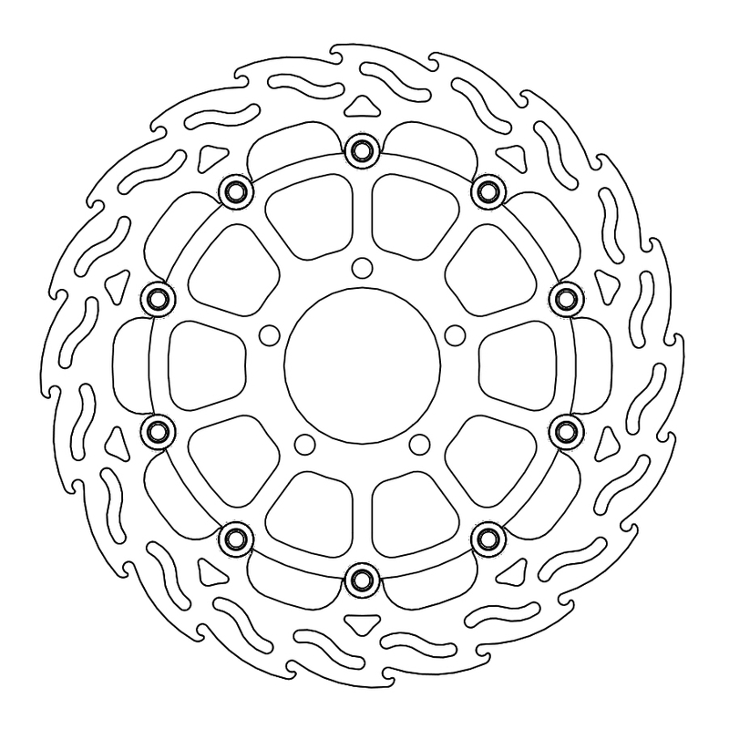 Questo disco flottante con rotore inacciaio anodizzato di colore nero o o argento. Con il famoso disegno a fiamma che ne aumenta il raffreddamento. Compatibile con la pinza freno originale