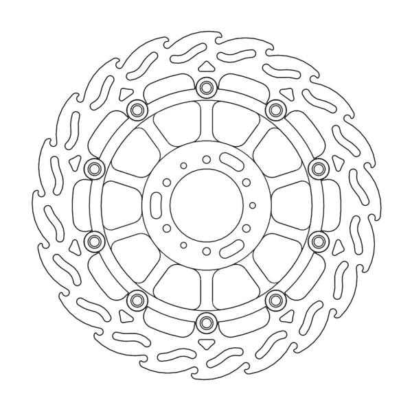 Disco da 320/300 specifico per le Motard da gara e' realizzato con mat eriali di qualita' superiore e garantisce le massime prestazioni. Questo disco flottante da 320 mm con rotore interno in acciaio anodizzato nero o argento e' progettato per e ssere utilizzato con la pinza Supermoto Racing. Lo spessore del disco e' stato portato a 5mm per contrastare i fenomeni di deformazioni dovuti al calore. Non compatibile con la pinza freno originale. E' stato sviluppato anche un disco da 320mm per la versione stradale che monta con pinza e pompa originale