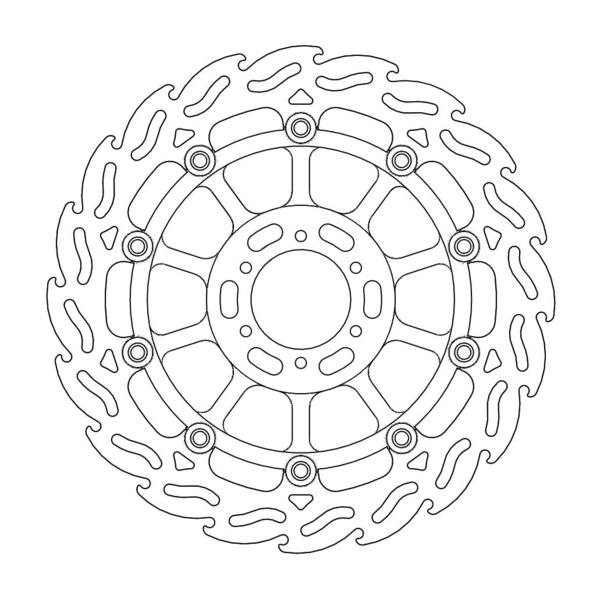 Disco da 320/300 specifico per le Motard da gara e' realizzato con mat eriali di qualita' superiore e garantisce le massime prestazioni. Questo disco flottante da 320 mm con rotore interno in acciaio anodizzato nero o argento e' progettato per e ssere utilizzato con la pinza Supermoto Racing. Lo spessore del disco e' stato portato a 5mm per contrastare i fenomeni di deformazioni dovuti al calore. Non compatibile con la pinza freno originale. E' stato sviluppato anche un disco da 320mm per la versione stradale che monta con pinza e pompa originale