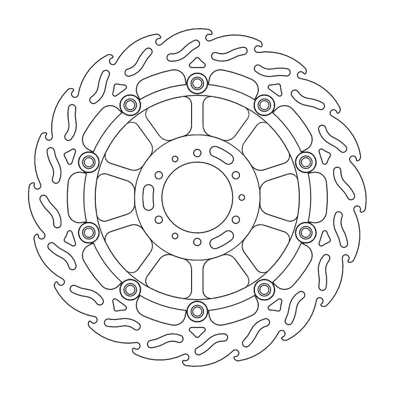 Disco da 320/300 specifico per le Motard da gara e' realizzato con mat eriali di qualita' superiore e garantisce le massime prestazioni. Questo disco flottante da 320 mm con rotore interno in acciaio anodizzato nero o argento e' progettato per e ssere utilizzato con la pinza Supermoto Racing. Lo spessore del disco e' stato portato a 5mm per contrastare i fenomeni di deformazioni dovuti al calore. Non compatibile con la pinza freno originale. E' stato sviluppato anche un disco da 320mm per la versione stradale che monta con pinza e pompa originale