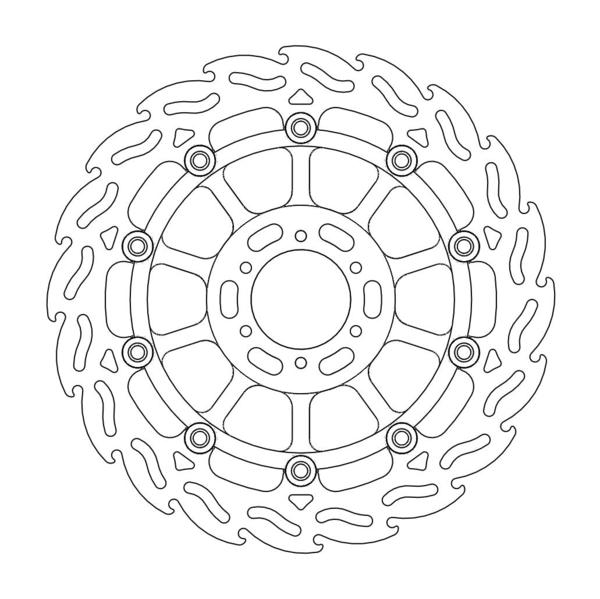 Disco da 320/300 specifico per le Motard da gara e' realizzato con mat eriali di qualita' superiore e garantisce le massime prestazioni. Questo disco flottante da 320 mm con rotore interno in acciaio anodizzato nero o argento e' progettato per e ssere utilizzato con la pinza Supermoto Racing. Lo spessore del disco e' stato portato a 5mm per contrastare i fenomeni di deformazioni dovuti al calore. Non compatibile con la pinza freno originale. E' stato sviluppato anche un disco da 320mm per la versione stradale che monta con pinza e pompa originale