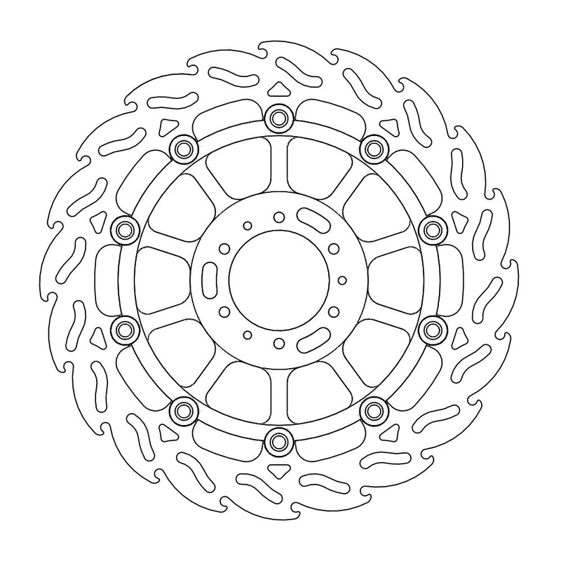 Disco da 320/300 specifico per le Motard da gara e' realizzato con mat eriali di qualita' superiore e garantisce le massime prestazioni. Questo disco flottante da 320 mm con rotore interno in acciaio anodizzato nero o argento e' progettato per e ssere utilizzato con la pinza Supermoto Racing. Lo spessore del disco e' stato portato a 5mm per contrastare i fenomeni di deformazioni dovuti al calore. Non compatibile con la pinza freno originale. E' stato sviluppato anche un disco da 320mm per la versione stradale che monta con pinza e pompa originale