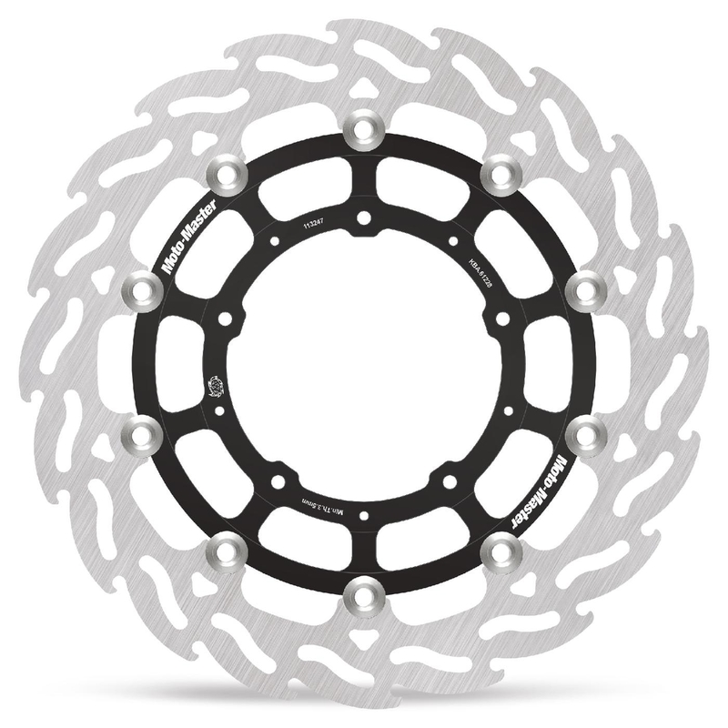 Disco da 320/300 specifico per le Motard da gara e' realizzato con mat eriali di qualita' superiore e garantisce le massime prestazioni. Questo disco flottante da 320 mm con rotore interno in acciaio anodizzato nero o argento e' progettato per e ssere utilizzato con la pinza Supermoto Racing. Lo spessore del disco e' stato portato a 5mm per contrastare i fenomeni di deformazioni dovuti al calore. Non compatibile con la pinza freno originale. E' stato sviluppato anche un disco da 320mm per la versione stradale che monta con pinza e pompa originale