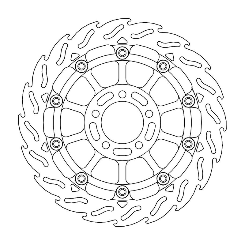 Disco da 320/300 specifico per le Motard da gara e' realizzato con mat eriali di qualita' superiore e garantisce le massime prestazioni. Questo disco flottante da 320 mm con rotore interno in acciaio anodizzato nero o argento e' progettato per e ssere utilizzato con la pinza Supermoto Racing. Lo spessore del disco e' stato portato a 5mm per contrastare i fenomeni di deformazioni dovuti al calore. Non compatibile con la pinza freno originale. E' stato sviluppato anche un disco da 320mm per la versione stradale che monta con pinza e pompa originale