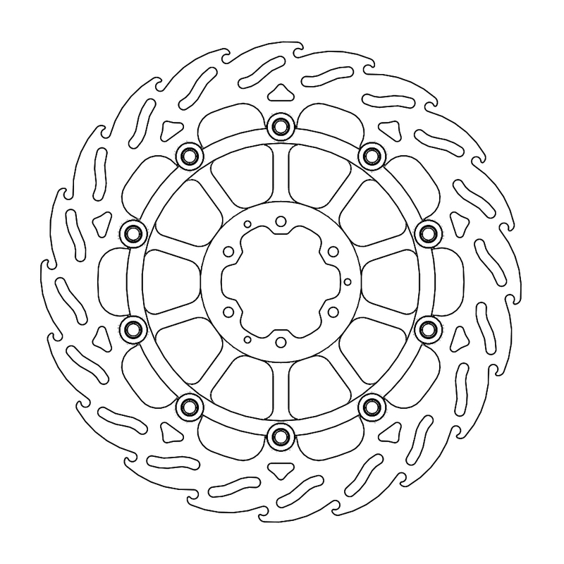 Disco da 320/300 specifico per le Motard da gara e' realizzato con mat eriali di qualita' superiore e garantisce le massime prestazioni. Questo disco flottante da 320 mm con rotore interno in acciaio anodizzato nero o argento e' progettato per e ssere utilizzato con la pinza Supermoto Racing. Lo spessore del disco e' stato portato a 5mm per contrastare i fenomeni di deformazioni dovuti al calore. Non compatibile con la pinza freno originale. E' stato sviluppato anche un disco da 320mm per la versione stradale che monta con pinza e pompa originale