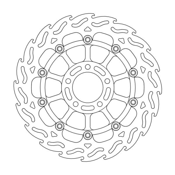 Disco da 320/300 specifico per le Motard da gara e' realizzato con mat eriali di qualita' superiore e garantisce le massime prestazioni. Questo disco flottante da 320 mm con rotore interno in acciaio anodizzato nero o argento e' progettato per e ssere utilizzato con la pinza Supermoto Racing. Lo spessore del disco e' stato portato a 5mm per contrastare i fenomeni di deformazioni dovuti al calore. Non compatibile con la pinza freno originale. E' stato sviluppato anche un disco da 320mm per la versione stradale che monta con pinza e pompa originale