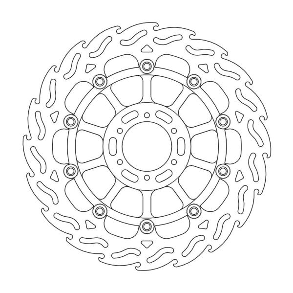 Disco da 320/300 specifico per le Motard da gara e' realizzato con mat eriali di qualita' superiore e garantisce le massime prestazioni. Questo disco flottante da 320 mm con rotore interno in acciaio anodizzato nero o argento e' progettato per e ssere utilizzato con la pinza Supermoto Racing. Lo spessore del disco e' stato portato a 5mm per contrastare i fenomeni di deformazioni dovuti al calore. Non compatibile con la pinza freno originale. E' stato sviluppato anche un disco da 320mm per la versione stradale che monta con pinza e pompa originale