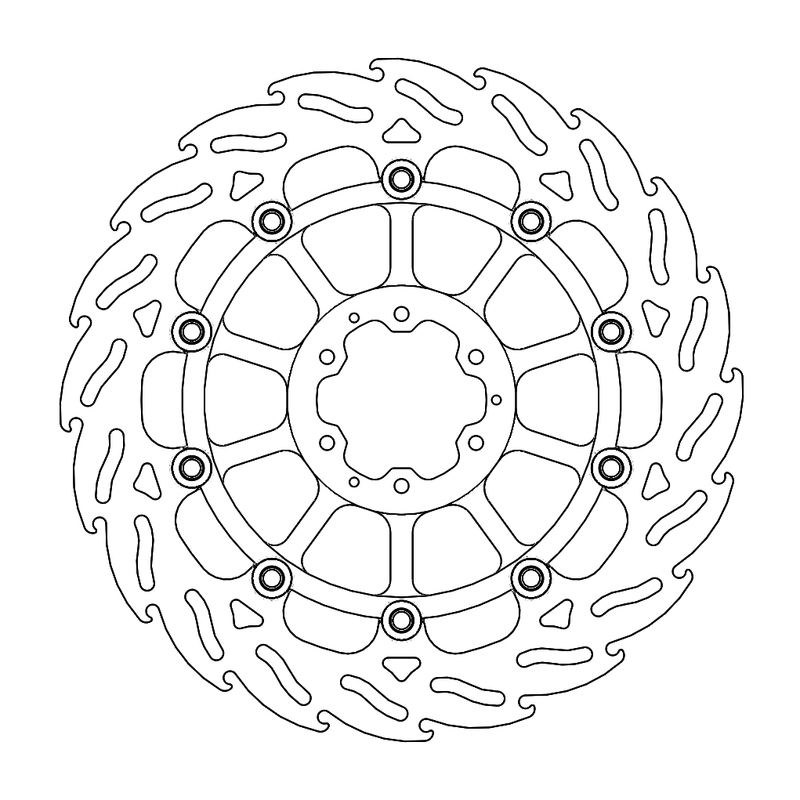 Disco da 320/300 specifico per le Motard da gara e' realizzato con mat eriali di qualita' superiore e garantisce le massime prestazioni. Questo disco flottante da 320 mm con rotore interno in acciaio anodizzato nero o argento e' progettato per e ssere utilizzato con la pinza Supermoto Racing. Lo spessore del disco e' stato portato a 5mm per contrastare i fenomeni di deformazioni dovuti al calore. Non compatibile con la pinza freno originale. E' stato sviluppato anche un disco da 320mm per la versione stradale che monta con pinza e pompa originale