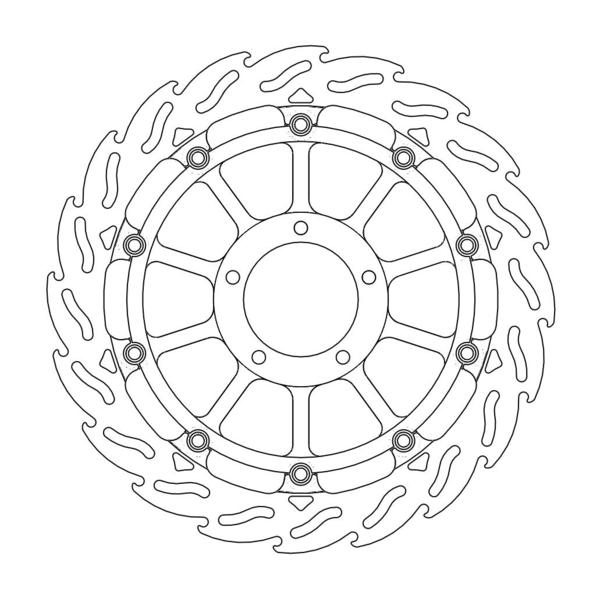 Disco da 320/300 specifico per le Motard da gara e' realizzato con mat eriali di qualita' superiore e garantisce le massime prestazioni. Questo disco flottante da 320 mm con rotore interno in acciaio anodizzato nero o argento e' progettato per e ssere utilizzato con la pinza Supermoto Racing. Lo spessore del disco e' stato portato a 5mm per contrastare i fenomeni di deformazioni dovuti al calore. Non compatibile con la pinza freno originale. E' stato sviluppato anche un disco da 320mm per la versione stradale che monta con pinza e pompa originale