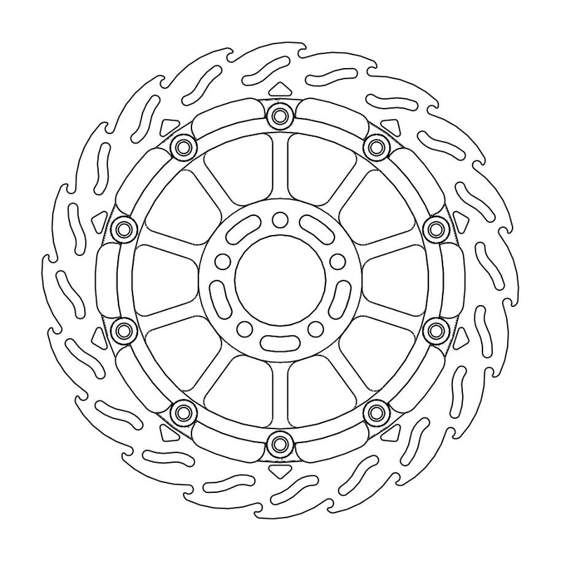 Disco da 320/300 specifico per le Motard da gara e' realizzato con mat eriali di qualita' superiore e garantisce le massime prestazioni. Questo disco flottante da 320 mm con rotore interno in acciaio anodizzato nero o argento e' progettato per e ssere utilizzato con la pinza Supermoto Racing. Lo spessore del disco e' stato portato a 5mm per contrastare i fenomeni di deformazioni dovuti al calore. Non compatibile con la pinza freno originale. E' stato sviluppato anche un disco da 320mm per la versione stradale che monta con pinza e pompa originale