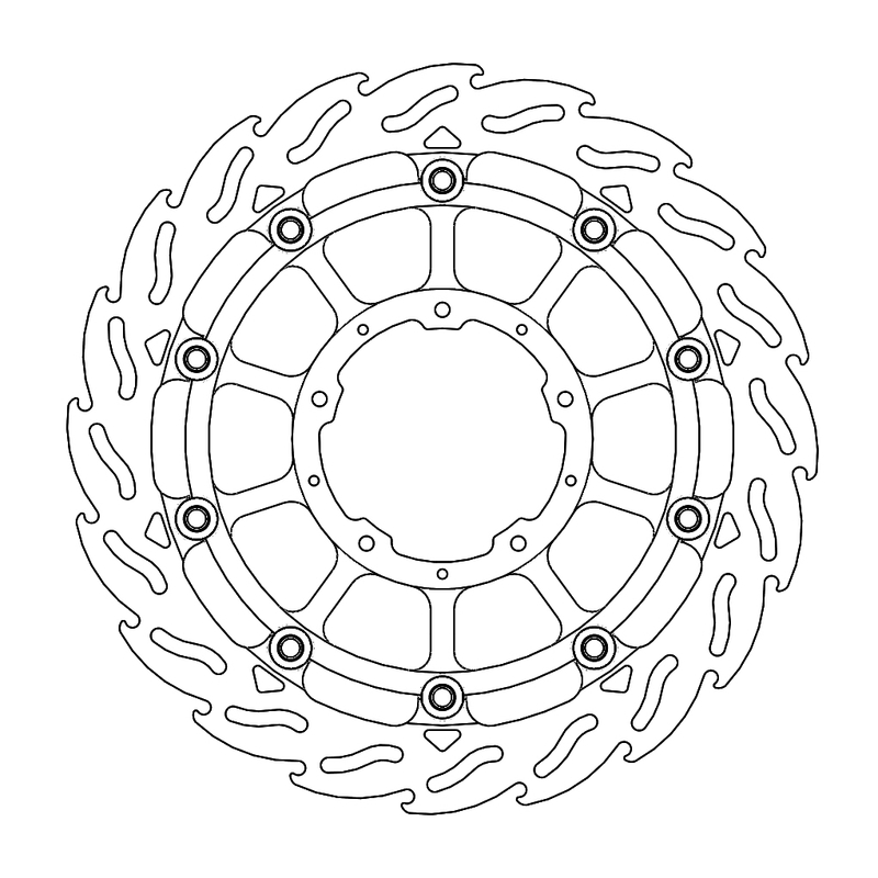 Disco da 320/300 specifico per le Motard da gara e' realizzato con mat eriali di qualita' superiore e garantisce le massime prestazioni. Questo disco flottante da 320 mm con rotore interno in acciaio anodizzato nero o argento e' progettato per e ssere utilizzato con la pinza Supermoto Racing. Lo spessore del disco e' stato portato a 5mm per contrastare i fenomeni di deformazioni dovuti al calore. Non compatibile con la pinza freno originale. E' stato sviluppato anche un disco da 320mm per la versione stradale che monta con pinza e pompa originale