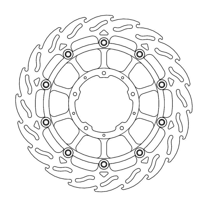 Disco da 320/300 specifico per le Motard da gara e' realizzato con mat eriali di qualita' superiore e garantisce le massime prestazioni. Questo disco flottante da 320 mm con rotore interno in acciaio anodizzato nero o argento e' progettato per e ssere utilizzato con la pinza Supermoto Racing. Lo spessore del disco e' stato portato a 5mm per contrastare i fenomeni di deformazioni dovuti al calore. Non compatibile con la pinza freno originale. E' stato sviluppato anche un disco da 320mm per la versione stradale che monta con pinza e pompa originale