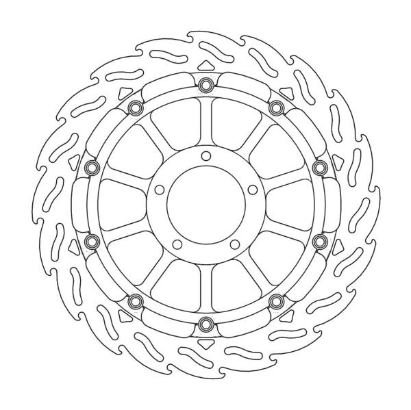 Disco da 320/300 specifico per le Motard da gara e' realizzato con mat eriali di qualita' superiore e garantisce le massime prestazioni. Questo disco flottante da 320 mm con rotore interno in acciaio anodizzato nero o argento e' progettato per e ssere utilizzato con la pinza Supermoto Racing. Lo spessore del disco e' stato portato a 5mm per contrastare i fenomeni di deformazioni dovuti al calore. Non compatibile con la pinza freno originale. E' stato sviluppato anche un disco da 320mm per la versione stradale che monta con pinza e pompa originale