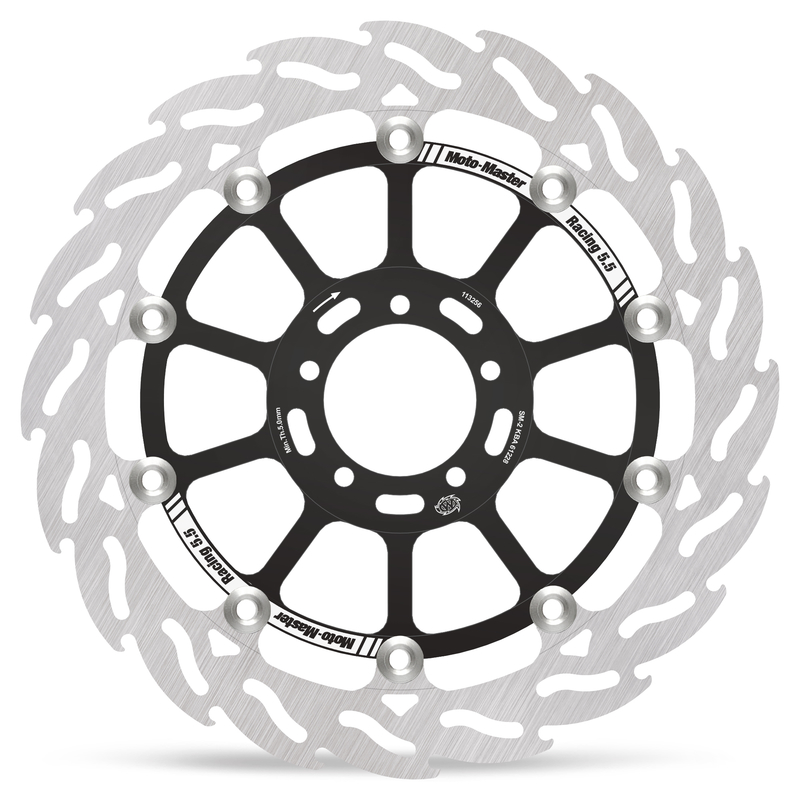 Disco da 320/300 specifico per le Motard da gara e' realizzato con mat eriali di qualita' superiore e garantisce le massime prestazioni. Questo disco flottante da 320 mm con rotore interno in acciaio anodizzato nero o argento e' progettato per e ssere utilizzato con la pinza Supermoto Racing. Lo spessore del disco e' stato portato a 5mm per contrastare i fenomeni di deformazioni dovuti al calore. Non compatibile con la pinza freno originale. E' stato sviluppato anche un disco da 320mm per la versione stradale che monta con pinza e pompa originale