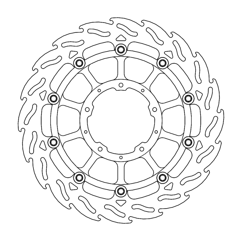 Disco da 320/300 specifico per le Motard da gara e' realizzato con mat eriali di qualita' superiore e garantisce le massime prestazioni. Questo disco flottante da 320 mm con rotore interno in acciaio anodizzato nero o argento e' progettato per e ssere utilizzato con la pinza Supermoto Racing. Lo spessore del disco e' stato portato a 5mm per contrastare i fenomeni di deformazioni dovuti al calore. Non compatibile con la pinza freno originale. E' stato sviluppato anche un disco da 320mm per la versione stradale che monta con pinza e pompa originale