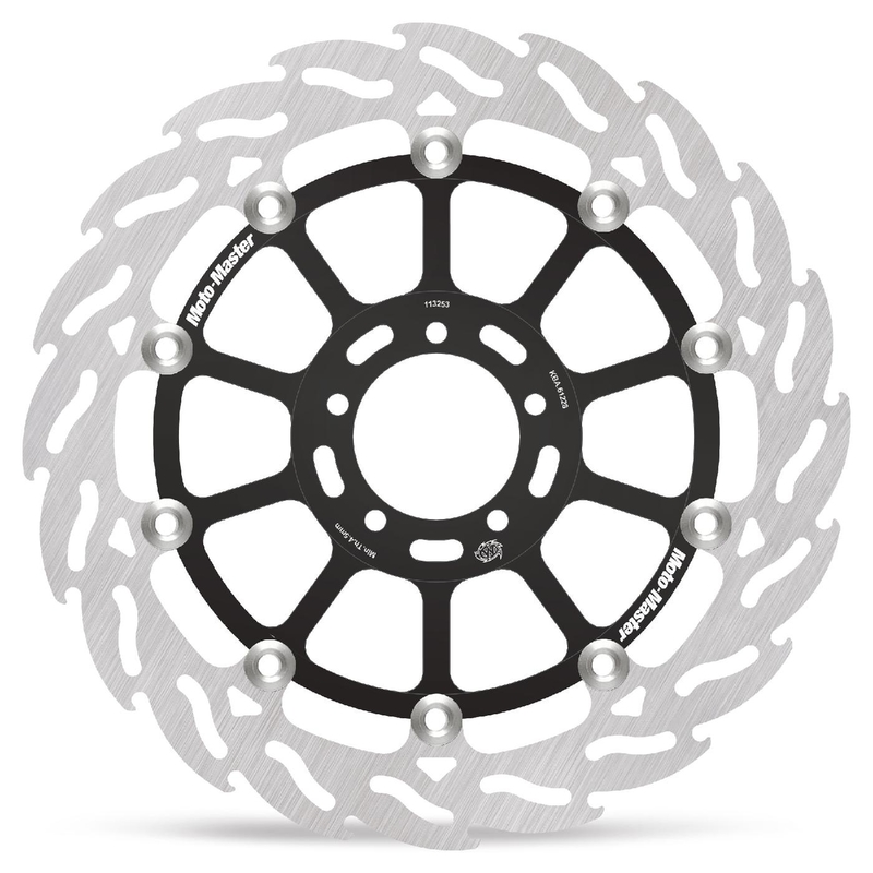 Disco da 320/300 specifico per le Motard da gara e' realizzato con mat eriali di qualita' superiore e garantisce le massime prestazioni. Questo disco flottante da 320 mm con rotore interno in acciaio anodizzato nero o argento e' progettato per e ssere utilizzato con la pinza Supermoto Racing. Lo spessore del disco e' stato portato a 5mm per contrastare i fenomeni di deformazioni dovuti al calore. Non compatibile con la pinza freno originale. E' stato sviluppato anche un disco da 320mm per la versione stradale che monta con pinza e pompa originale