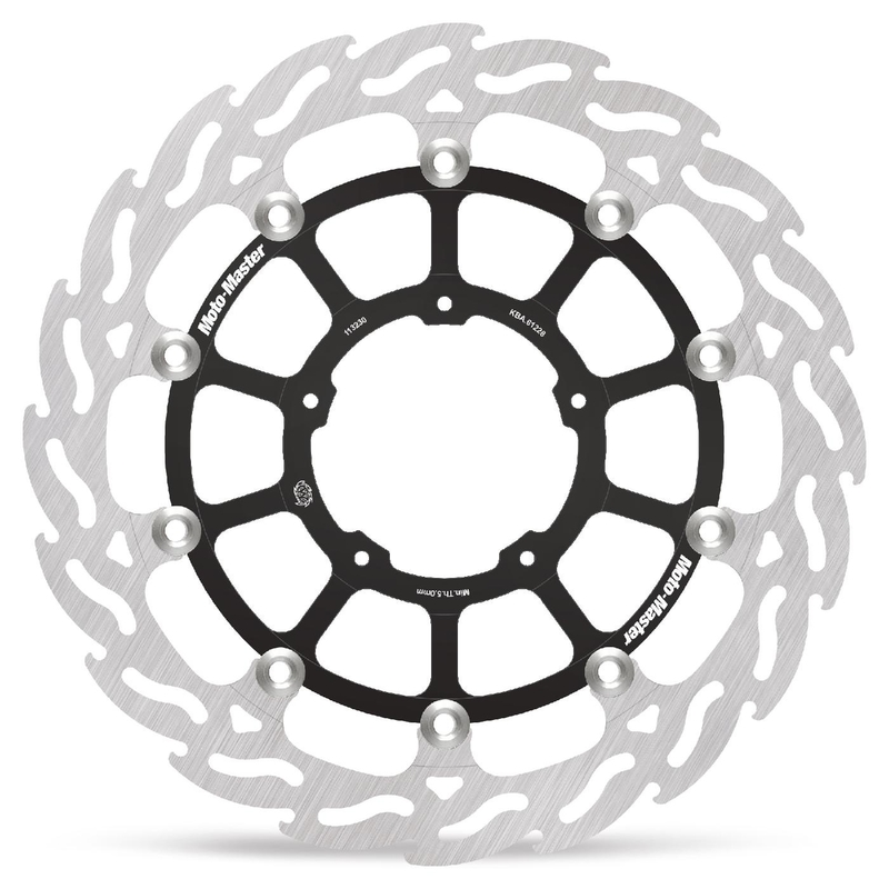 Disco da 320/300 specifico per le Motard da gara e' realizzato con mat eriali di qualita' superiore e garantisce le massime prestazioni. Questo disco flottante da 320 mm con rotore interno in acciaio anodizzato nero o argento e' progettato per e ssere utilizzato con la pinza Supermoto Racing. Lo spessore del disco e' stato portato a 5mm per contrastare i fenomeni di deformazioni dovuti al calore. Non compatibile con la pinza freno originale. E' stato sviluppato anche un disco da 320mm per la versione stradale che monta con pinza e pompa originale
