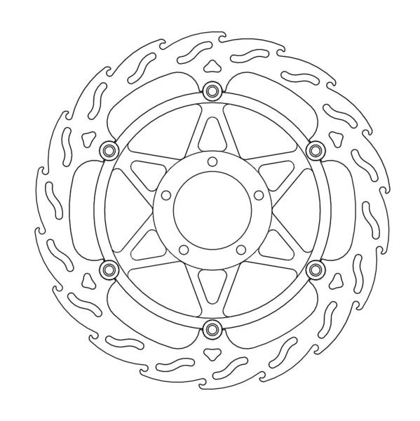 Disco da 320/300 specifico per le Motard da gara e' realizzato con mat eriali di qualita' superiore e garantisce le massime prestazioni. Questo disco flottante da 320 mm con rotore interno in acciaio anodizzato nero o argento e' progettato per e ssere utilizzato con la pinza Supermoto Racing. Lo spessore del disco e' stato portato a 5mm per contrastare i fenomeni di deformazioni dovuti al calore. Non compatibile con la pinza freno originale. E' stato sviluppato anche un disco da 320mm per la versione stradale che monta con pinza e pompa originale
