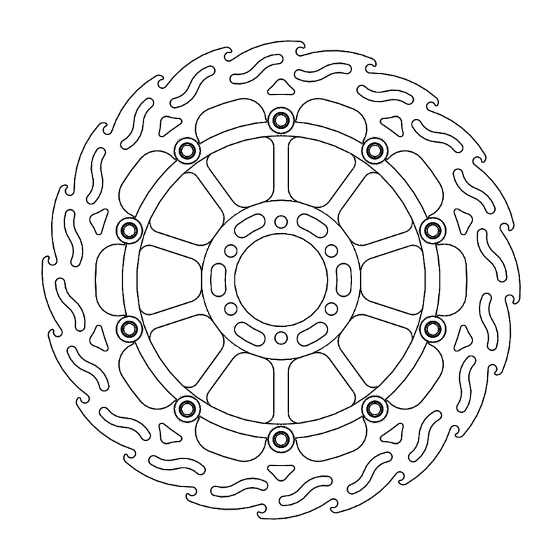 Disco da 320/300 specifico per le Motard da gara e' realizzato con mat eriali di qualita' superiore e garantisce le massime prestazioni. Questo disco flottante da 320 mm con rotore interno in acciaio anodizzato nero o argento e' progettato per e ssere utilizzato con la pinza Supermoto Racing. Lo spessore del disco e' stato portato a 5mm per contrastare i fenomeni di deformazioni dovuti al calore. Non compatibile con la pinza freno originale. E' stato sviluppato anche un disco da 320mm per la versione stradale che monta con pinza e pompa originale