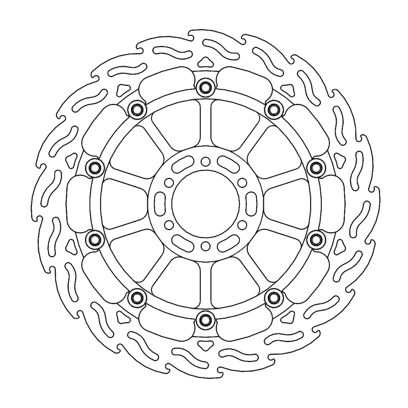 Disco da 320/300 specifico per le Motard da gara e' realizzato con mat eriali di qualita' superiore e garantisce le massime prestazioni. Questo disco flottante da 320 mm con rotore interno in acciaio anodizzato nero o argento e' progettato per e ssere utilizzato con la pinza Supermoto Racing. Lo spessore del disco e' stato portato a 5mm per contrastare i fenomeni di deformazioni dovuti al calore. Non compatibile con la pinza freno originale. E' stato sviluppato anche un disco da 320mm per la versione stradale che monta con pinza e pompa originale