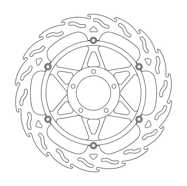 Disco da 320/300 specifico per le Motard da gara e' realizzato con mat eriali di qualita' superiore e garantisce le massime prestazioni. Questo disco flottante da 320 mm con rotore interno in acciaio anodizzato nero o argento e' progettato per e ssere utilizzato con la pinza Supermoto Racing. Lo spessore del disco e' stato portato a 5mm per contrastare i fenomeni di deformazioni dovuti al calore. Non compatibile con la pinza freno originale. E' stato sviluppato anche un disco da 320mm per la versione stradale che monta con pinza e pompa originale