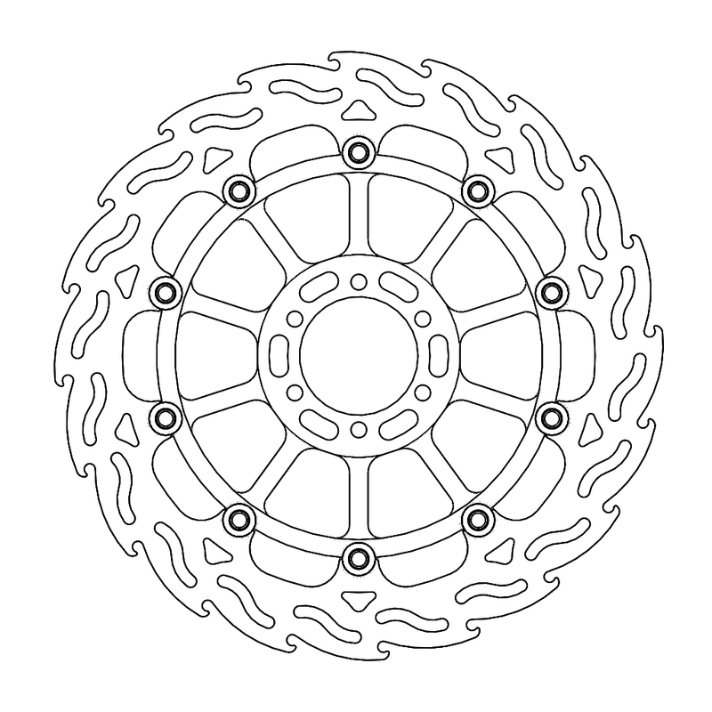 Disco da 320/300 specifico per le Motard da gara e' realizzato con mat eriali di qualita' superiore e garantisce le massime prestazioni. Questo disco flottante da 320 mm con rotore interno in acciaio anodizzato nero o argento e' progettato per e ssere utilizzato con la pinza Supermoto Racing. Lo spessore del disco e' stato portato a 5mm per contrastare i fenomeni di deformazioni dovuti al calore. Non compatibile con la pinza freno originale. E' stato sviluppato anche un disco da 320mm per la versione stradale che monta con pinza e pompa originale