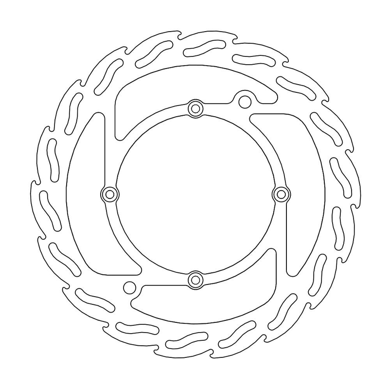 Costruiti con acciaio di derivazioneaereonautica, disponibili sia per ilposteriore che per l'anteriore, tagliati al laser e lavorati con macchine ad alta precisione CNC, vengono rettificati e trattati termicamente per resistere al calore, alla deformazione e alla corrosione. Il particolare disegno delle zone di alleggerimento consente un apprezzabile riduzione di peso el'annullamento dell'effetto giroscopico dovuto alla maggiorazione del diametro esterno. I nottolini di collegamento (costruiti in ergal con ossidazione dura) di ultima generazione consentono il reale adattamento della pista frenante per permettere la completa efficienza del sistema, garantendo prestazioni costanti anche in condizioni di utilizzo severe. Per l'utilizzo di alcuni necessario rip osizionare la pinza freno tramite lo specifico supporto pinza MOTOMASTER.