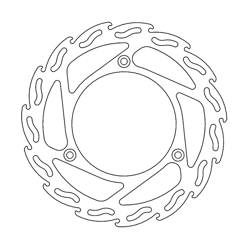 Costruiti con acciaio di derivazioneaereonautica, disponibili sia per ilposteriore che per l'anteriore, tagliati al laser e lavorati con macchine ad alta precisione CNC, vengono rettificati e trattati termicamente per resistere al calore, alla deformazione e alla corrosione. Il particolare disegno delle zone di alleggerimento consente un apprezzabile riduzione di peso el'annullamento dell'effetto giroscopico dovuto alla maggiorazione del diametro esterno. I nottolini di collegamento (costruiti in ergal con ossidazione dura) di ultima generazione consentono il reale adattamento della pista frenante per permettere la completa efficienza del sistema, garantendo prestazioni costanti anche in condizioni di utilizzo severe. Per l'utilizzo di alcuni necessario rip osizionare la pinza freno tramite lo specifico supporto pinza MOTOMASTER.