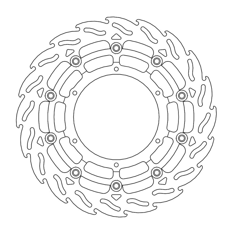 Disco da 320/300 specifico per le Motard da gara e' realizzato con mat eriali di qualita' superiore e garantisce le massime prestazioni. Questo disco flottante da 320 mm con rotore interno in acciaio anodizzato nero o argento e' progettato per e ssere utilizzato con la pinza Supermoto Racing. Lo spessore del disco e' stato portato a 5mm per contrastare i fenomeni di deformazioni dovuti al calore. Non compatibile con la pinza freno originale. E' stato sviluppato anche un disco da 320mm per la versione stradale che monta con pinza e pompa originale