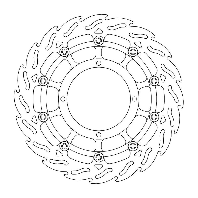 Disco da 320/300 specifico per le Motard da gara e' realizzato con mat eriali di qualita' superiore e garantisce le massime prestazioni. Questo disco flottante da 320 mm con rotore interno in acciaio anodizzato nero o argento e' progettato per e ssere utilizzato con la pinza Supermoto Racing. Lo spessore del disco e' stato portato a 5mm per contrastare i fenomeni di deformazioni dovuti al calore. Non compatibile con la pinza freno originale. E' stato sviluppato anche un disco da 320mm per la versione stradale che monta con pinza e pompa originale