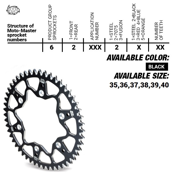 Le corone Moto-Master 7075 sono realizzate secondo i pi alti standard in termini di materiali, processi dimateriali, processi di produzione e tecnologia all'avanguardia. Realizzate in alluminio 7075-T6 di grado aeronautico, una delle corone pi leggere sul mercato, perfette per uso racing G.P.