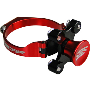 Anello in alluminio anodizzato lavorato a CNC con cardine per una facile installazione. La forcella non deveessere rimossa per l'installazione. La punta di bloccaggio del dispositivo e' realizzata in resistentissimo titanio Ti-6AI-4V. L'interno dell'anello di alluminio e' rivestito di nylon per evitare di graffiare la forcella. Colori arancione, blu, rosso.