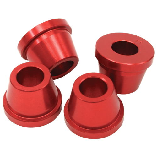 Guarnizioni coniche in alluminio anodizzato A7009-T6 da sostituire a quelle originali in gomma. Migliorano il controllo della moto ed evitano che il manubrio si giri in caso di cadute. La confezione comprende 4 guarnizioni. Colori rosso, blu.