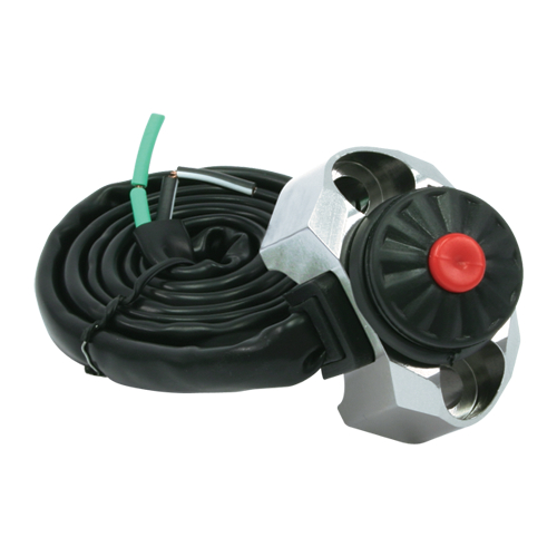 Kill switch con collarino in alluminio A7009-T6 lavorato a CNC da avvitare al manubrio. Colore titanio. La confezione comprende i cavi e la bulloneria per il montaggio.