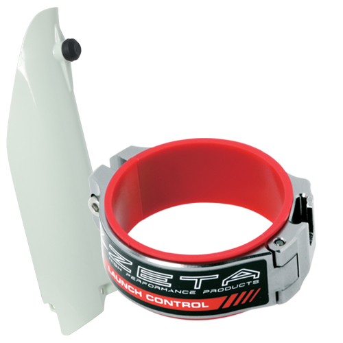 Anello in alluminio 7075-T6 con cardine per una facile installazione. La forcella non deve essere rimossa per l'installazione. La confezione comprende il dispositivo Lunch control installato su di un paraforcella. (solo un lato). La punta di bloccaggio del dispositivo e' realizzata in resistentissimo titanio Ti-6AI-4V. L'ieterno dell'anello di alluminio e' rivestito di nylon per evitare di graffiare la forcella.