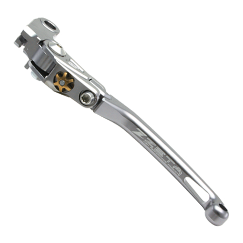 Leva corta lavorata a CNC per moto sportive. Il sistema di snodi permette alla leva di muoversi verso l'alto, verso il basso e verso l'esterno evitando cosi' la rottura in caso di cadute. Il pomello permette un accurato settaggio. Colori nero, titanio. Parti di ricambio disponibili.