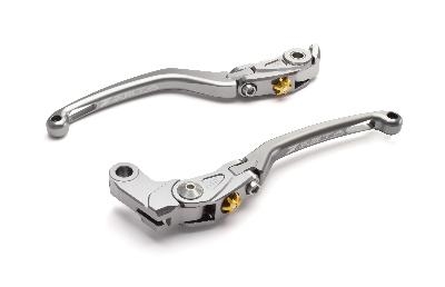 Leva corta lavorata a CNC per moto sportive. Il sistema di snodi permette alla leva di muoversi verso l'alto, verso il basso e verso l'esterno evitando cosi' la rottura in caso di cadute. Il pomello permette un accurato settaggio. Colori nero, titanio. Parti di ricambio disponibili.