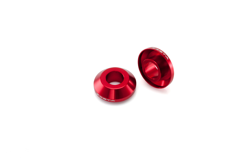 Realizzati in alluminio anodizzato A7009 aeronautico e progettati per una rapida installazione. Mantiene la ruota spaziata per facilitare le operazioni di manutenzione. Piu' resistenti e meno pesanti di quelli originali. Distanziale destro e sinistro venduti in coppia